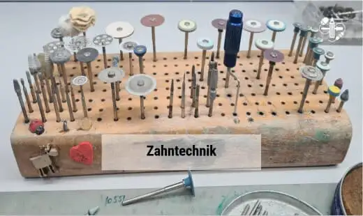 Als Zahntechniker/in benutzt du häufig Modellierinstrumente zum Modellieren von Wachs, Kunststoff und Gips, Pinsel zum Schichten von Keramik, Fräser, Schleifer, Polierer, Diamantschleifer zum Bearbeiten von Kunststoff, Keramik, Metall, Zirkon, Gips, Zangen zum Biegen von Drähten.